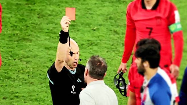 항의하던 벤투 감독이 레드카드를 받은 것은 바뀐 규정 때문이었습니다.