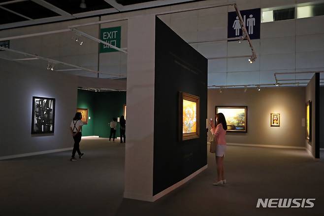 [홍콩=뉴시스] 박진희 기자 = 29일 크리스티 홍콩 프리뷰 전시장인 홍콩 컨벤션 센터(HKCEC)를 찾은 관람객이 경매 작품을 살펴보고 있다. 크리스티 홍콩은 올해 마지막 경매로 추정가 총 12억~17억 홍콩 달러(한화 약 2040억) 규모의 총 5개 경매를 펼친다. 2022.11.29. pak7130@newsis.com
