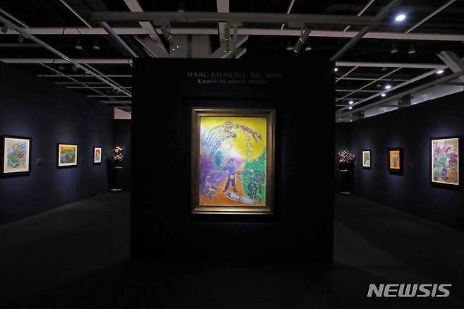 [홍콩=뉴시스] 박진희 기자 = 29일 크리스티 홍콩 프리뷰 전시장인 홍콩 컨벤션 센터(HKCEC)를 찾은 관람객이 '샤갈 특별 경매 전시관'을 돌아보고 있다. 크리스티 홍콩은 올해 마지막 경매로 추정가 총 12억~17억 홍콩 달러(한화 약 2040억) 규모의 총 5개 경매를 펼친다. 2022.11.29. pak7130@newsis.com