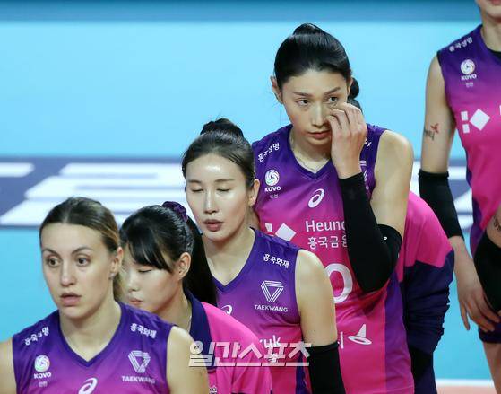 2022-2023 프로배구 V리그 여자부 흥국생명과 GS칼텍스의 경기가 29일 오후 인천 삼산월드체육관에서 열렸다. 풀세트 접전 끝에 패한 흥국생명 김연경이 경기 후 아쉬워하고 있다.
