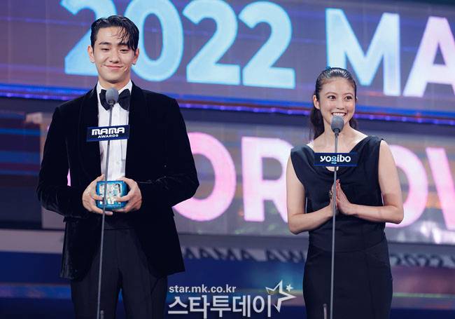 배우 남윤수, 아사다 미오가 29일 오후 일본 교세라 돔 오사카에서 열린 ‘2022 마마 어워즈(2022 MAMA AWARDS)’에 시상자로 참석했다.<사진ㅣMnet>