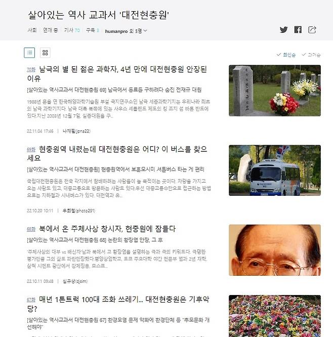 오마이뉴스, 대전현충원 재조명 70편 연재