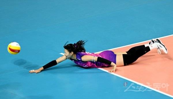 29일 인천 삼선월드체육관에서 ‘2022-2023 도드람 V리그’ 인천 흥국생명과 서울 GS칼텍스의 여자부 경기가 열렸다. 흥국생명 정윤주가 디그를 위해 몸을 날렸으나 실패하고 있다.