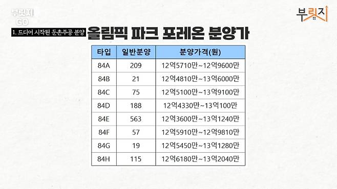 가장 중요한 건 바로 분양가입니다. 올림픽 파크 포레온의 1평(3.3㎡) 당 분양가는 3829만원으로 결정됐습니다. 조합이 신청했던 4000만원대의 분양가보다는 낮지만 시장이 예상했던 것보다는 높았습니다.