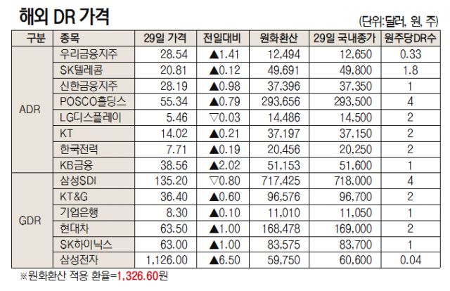 [데이터로 보는 증시]해외 DR 가격(11월 29일)