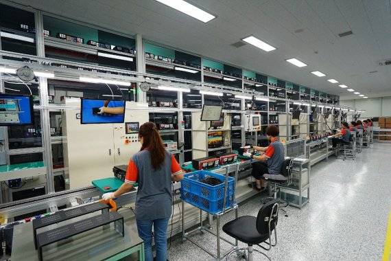 TJ미디어는 일본발 주문 물량을 소화하기 위해 공장 생산 라인을 100% 가동하고 있다.