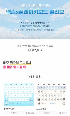 이번 넥슨과 컬래버는 11월 9일 ‘블루 아카이브’ 서비스 1주년을 기념해 게임 내 캐릭터와 대표 이미지를 활용한 모바일 키보드 디자인을 무료로 배포한 것이다. 12월 2일까지 총 9개의 키보드 디자인이 순차적으로 공개된다. 배포 개시 3주 만에 누적 다운로드 수는 8만2000여건을 돌파했고, 누적 댓글 수는 8300여건에 달한다.
