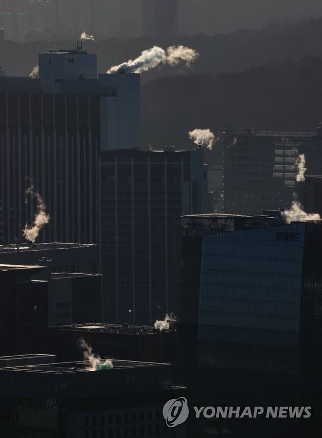 (서울=연합뉴스) 서대연 기자 = 서울 최저 기온이 영하 8도까지 떨어지며 강추위가 찾아온 30일 오전 서울 시내 건물들에서 난방 수증기가 나오고 있다. 2022.11.30