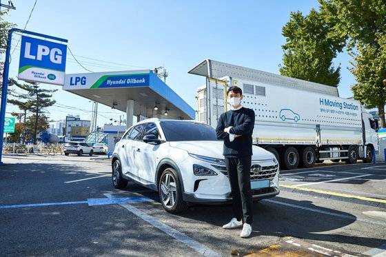 현대오일뱅크는 현대자동차, 현대글로비스, 현대로템과 함께 지난 10월부터 광진구 현대오일뱅크 직영 중곡LPG 충전소 부지를 활용하여 이동형 수소 충전소 서비스를 제공하고 있다. 이동형 수소 충전소는 현대차가 기획∙투자∙설계 총괄, 현대글로비스는 수소 공급 및 운영, 현대로템은 수소 충전 차량 제작 및 관리, 현대오일뱅크는 충전소 부지 제공을 담당한다.