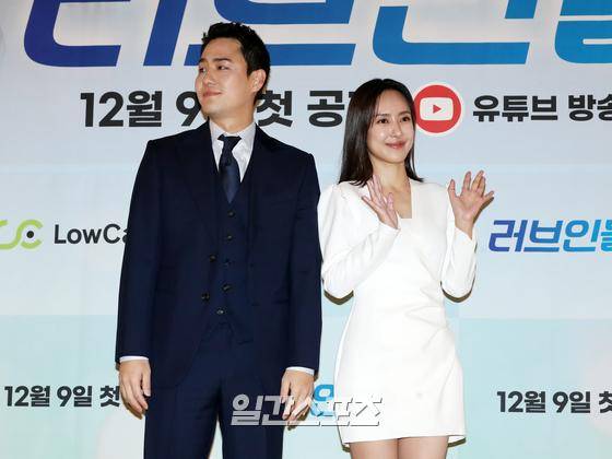 배우 장세원, 김윤서(왼쪽부터)가 30일 오전 서울 서초구 더 리버사이드 호텔에서 진행된 웹드라마 ‘러브인블루’ 기자간담회에 참석해 포토타임을 갖고 있다.