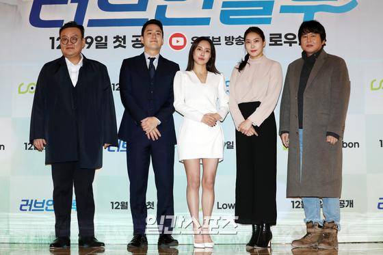 배우 차순배, 장세원, 김윤서, 연미주, 윤기원(왼쪽부터)이 30일 오전 서울 서초구 더 리버사이드 호텔에서 진행된 웹드라마 ‘러브인블루’ 기자간담회에 참석해 포토타임을 갖고 있다.