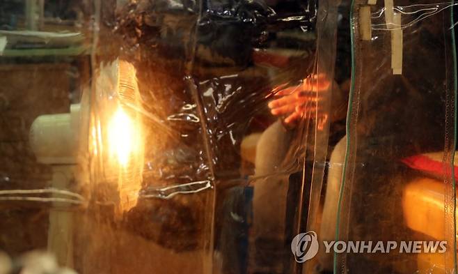 (청주=연합뉴스) 천경환 기자 = 하루 만에 기온이 10도 이상 급락한 30일 충북 청주 육거리시장에서 한 상인이 난로를 쬐며 몸을 녹이고 있다. 2022.11.30