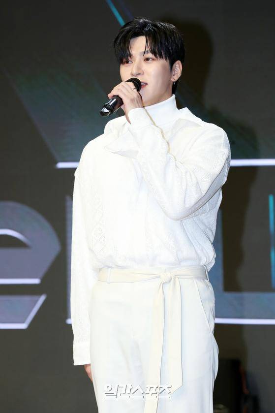 그룹 위앤유(WeNU) 지성환이 30일 오후 서울 강남구 일지아트홀에서 진행된 위앤유 첫 데뷔 앨범 '하루하루' 발매 기념 쇼케이스에 참석해 인사말을 하고 있다.