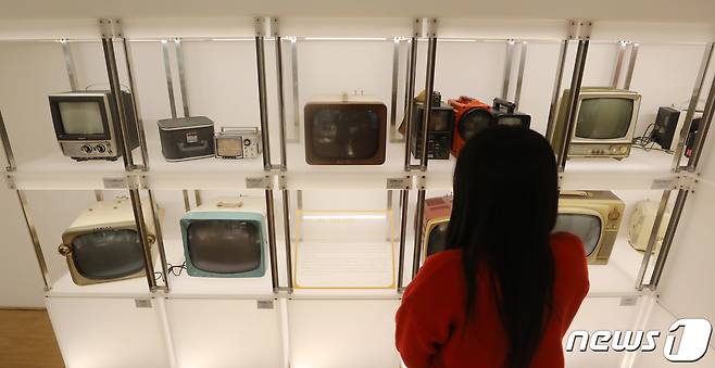 내년 5월 31일까지 열리는 'TELE(텔레) + VISION(비전) 내일의 기억’은 텔레비전의 역사를 DDP 소장품을 중심으로 약 100년 전 초기 진공관식(브라운관) 흑백 텔레비전부터 1969년 아폴로 11호가 달 착륙에 성공하면서 일었던 '우주 붐'을 반영한 비행접시형 TV, 최근의 벽걸이 TV까지 57개의 실물 TV와 관련 디지털 콘텐츠를 선보인다. 2022.11.30/뉴스1