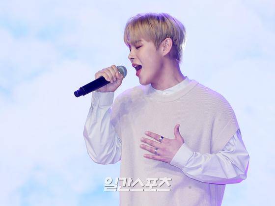 그룹 위앤유(WeNU) 윤희찬이 30일 오후 서울 강남구 일지아트홀에서 진행된 위앤유 첫 데뷔 앨범 '하루하루' 발매 기념 쇼케이스에 참석해 타이틀곡 '하루하루' 무대를 선보이고 있다.