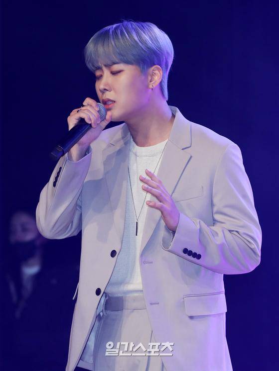 그룹 위앤유(WeNU) 박찬효가 30일 오후 서울 강남구 일지아트홀에서 진행된 위앤유 첫 데뷔 앨범 '하루하루' 발매 기념 쇼케이스에 참석해 타이틀곡 '하루하루' 무대를 선보이고 있다.