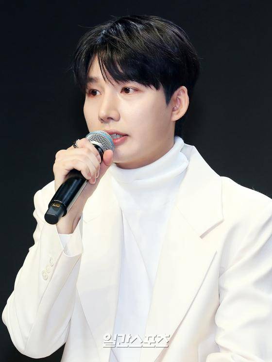 그룹 위앤유(WeNU) 한선우가 30일 오후 서울 강남구 일지아트홀에서 진행된 위앤유 첫 데뷔 앨범 '하루하루' 발매 기념 쇼케이스에 참석해 취재진의 질문에 답하고 있다.