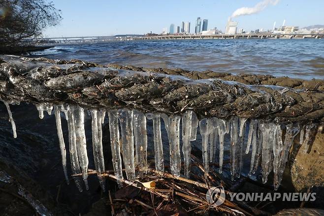 (서울=연합뉴스) 신현우 기자 = 전국에 강추위가 이어진 30일 오후 서울 여의도 한강 주변에 고드름이 달려 있다. 2022.11.30