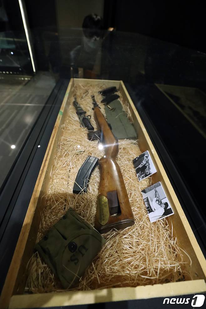 (서울=뉴스1) 황기선 기자 = 30일 서울 용산구 전쟁기념관에서 열린 '기밀해제-국군정보사령부 총기를 보다' 특별전에 M2 카빈 시제품 1호가 진열돼 있다.