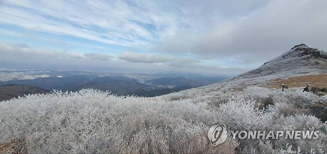 (광주=연합뉴스) 한파특보가 발효된 30일 무등산 국립공원에 올해 첫 상고대가 피어있다. 2022.11.30 [무등산국립공원사무소 제공. 재판매 및 DB 금지]
