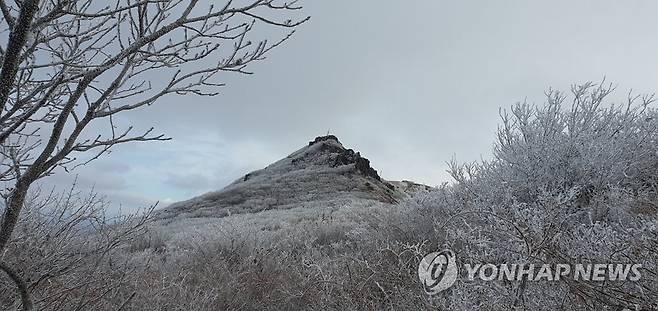 (광주=연합뉴스) 한파특보가 발효된 30일 무등산 국립공원에 올해 첫 상고대가 피어있다. 2022.11.30 [무등산국립공원사무소 제공. 재판매 및 DB 금지]