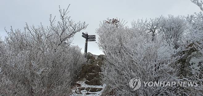 (광주=연합뉴스) 한파특보가 발효된 30일 무등산 국립공원에 올해 첫 상고대가 피어있다. 2022.11.30 [무등산국립공원사무소 제공. 재판매 및 DB 금지]