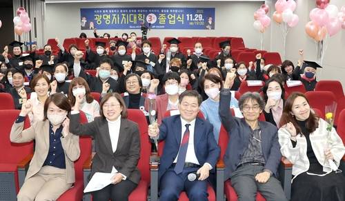 광명시(시장 박승원)는 지난 29일 광명시 평생학습원에서 박승원 광명시장을 비롯해 제3기 수료자와 관계자 등 70여 명이 참석한 가운데 '2022년도 광명자치대학 졸업식'을 개최했다.