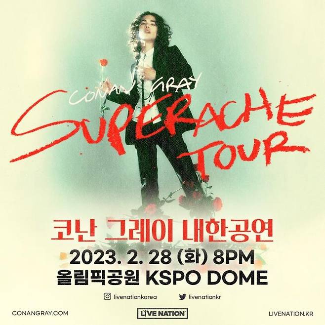 올해 여름, Haus of Wonder 페스티벌의 헤드 라이너로 내한했던 코난 그레이의 단독 공연 소식! 첫 내한 이후 약 6개월 만에 다시 한국 팬들과 만나게 된 것. 전 세계적으로 이름을 알린 'Maniac'부터 첫 빌보드 핫 100 싱글 차트에 이름을 올린 'Heather' 등의 히트곡을 비롯해 지난 페스티벌에서 미처 보여주지 못한 다양한 곡들과 볼거리로 가득 채워질 예정이다. 코난 그레이의 첫 단독 내한 공연은 2023년 2월 28일 오후 8시, 올림픽공원 KSPO DOME에서 개최된다.