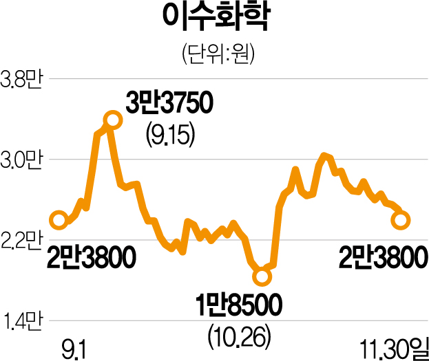 인적분할했는데 장중 12% 급락···이수화학 '분할공포증'에 짓눌렸나