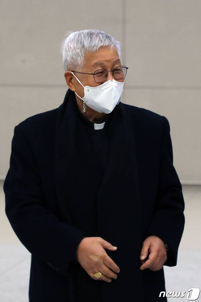(인천공항=뉴스1) 황기선 기자 = 유흥식 추기경이 30일 오후 인천국제공항을 통해 입국하고 있다. 2022.11.30/뉴스1