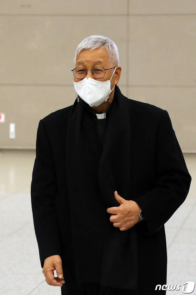 (인천공항=뉴스1) 황기선 기자 = 유흥식 추기경이 30일 오후 인천국제공항을 통해 입국하고 있다. 2022.11.30/뉴스1