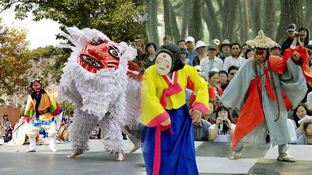 우리나라는 봉산탈춤, 하회별신굿놀이 등 국가무형문화재와 시도무형문화재로 지정된 18개 종목을 한데 묶어 등재에 성공했습니다.