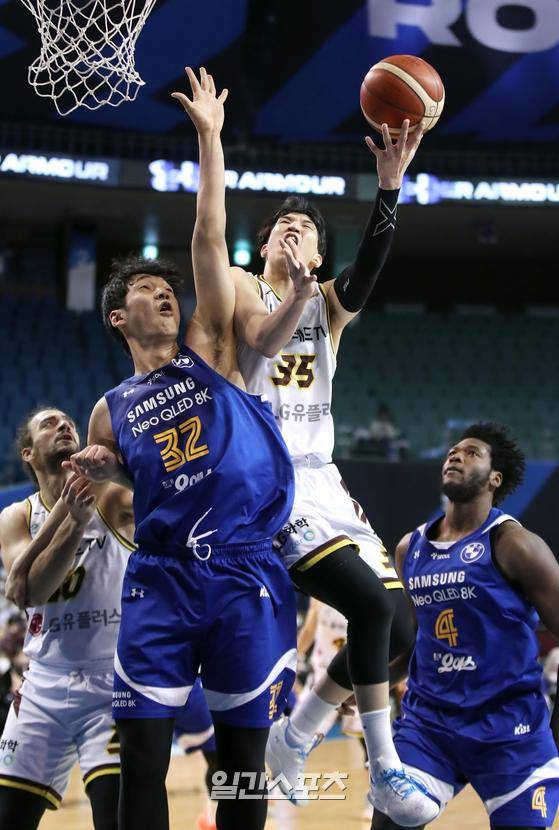 2022-2023 프로농구 서울삼성과 창원LG의 경기가 30일 오후 서울 잠실실내체육관에서 열렸다. 서민수가 조우성의 수비를 뚫고 슛을 하고 있다.