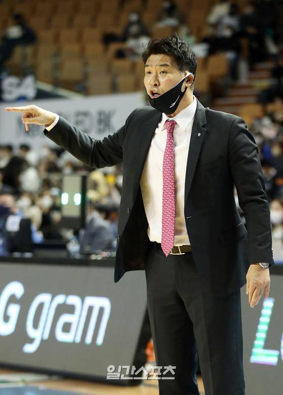 2022-2023 프로농구 서울삼성과 창원LG의 경기가 30일 오후 서울 잠실실내체육관에서 열렸다. 조상현 감독이 선수들에게 지시를 하고 있다.