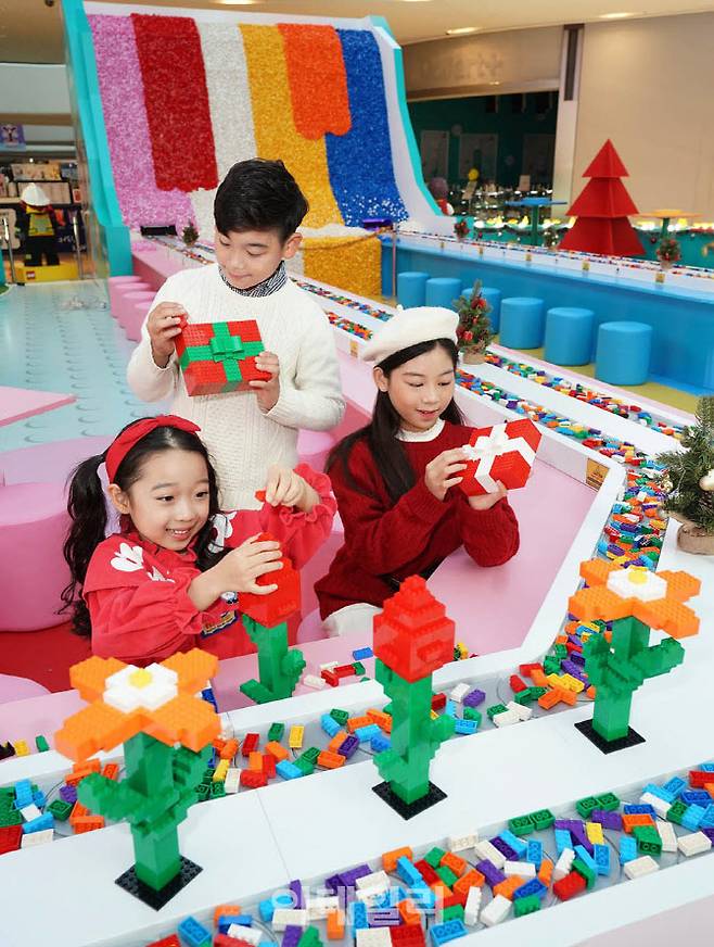 [이데일리 김태형 기자] 30일 스타필드 고양점 아트리움에 마련된 '레고 크리스마스 판타지 가든'을 찾은 어린이들이 레고 체험을 즐기고 있다.