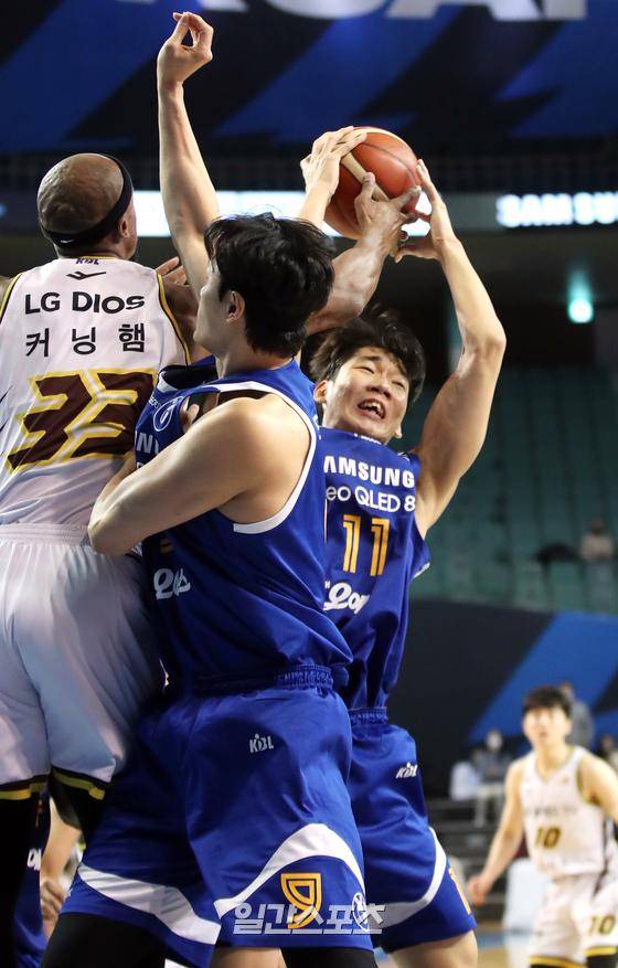 2022-2023 프로농구 서울삼성과 창원LG의 경기가 30일 오후 서울 잠실실내체육관에서 열렸다. 이원석이 리바운드를 따내고 있다.