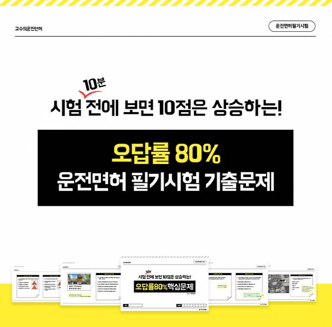 고수의운전면허 담당자는 "필기시험을 아쉽게 불합격하는 사람들이 있다. 오답률이 높은 기출문제만 선별한 '고수의운전면허 필기시험 기출문제'를 다운받아 틀리기 쉬운 문제까지도 확인하여 점수를 높일 수 있다. 짧은 시간 내에 효율적으로 준비할 수 있도록 스마트폰으로도 간단히 볼 수 있게 제작했다. 누구나 무료로 다운받아 운전면허 필기시험을 한 번에 합격하길 바란다."고 전했다.