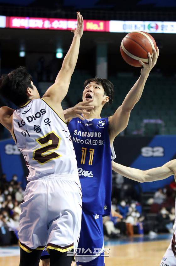 2022-2023 프로농구 서울삼성과 창원LG의 경기가 30일 오후 서울 잠실실내체육관에서 열렸다. 이원석이 골 밑 슛을 하고 있다.