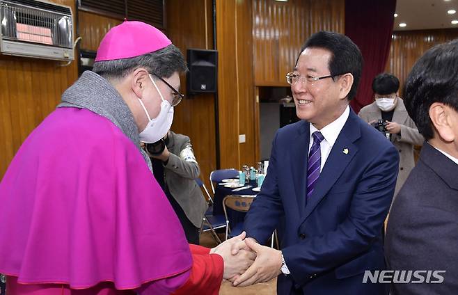 김영록 전남지사, 천주교 광주대교구장과 인사