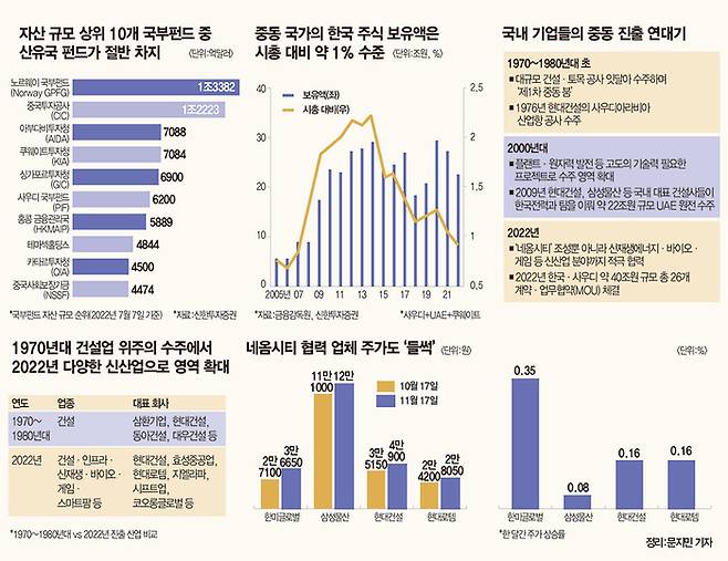 최유준 신한투자증권 애널리스트는 “중동 국가의 오일머니 투자는 고유가 이후 증가하는 경향이 있다”며 “국내 건설사들이 2000년대에는 플랜트, 2020년 이후에는 신도시 건설과 탄소중립 프로젝트에 주력하며 오일머니 효과를 누리는 중”이라고 분석했다.