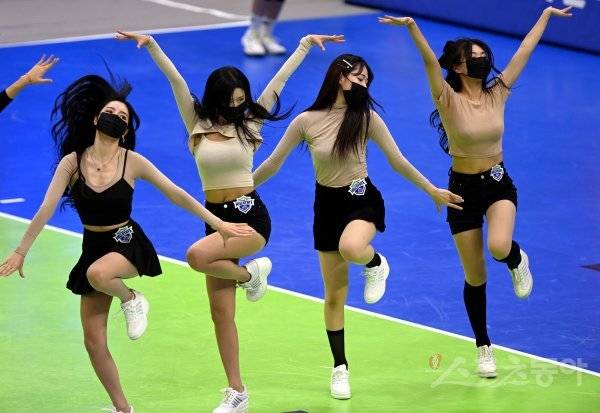 30일 경기도 수원체육관에서 ‘2022-2023 도드람 V리그’ 수원 현대건설과 대전 KGC인삼공사의 여자부 경기가 열렸다. 현대건설 치어리더가 화려한 공연을 펼치고 있다.