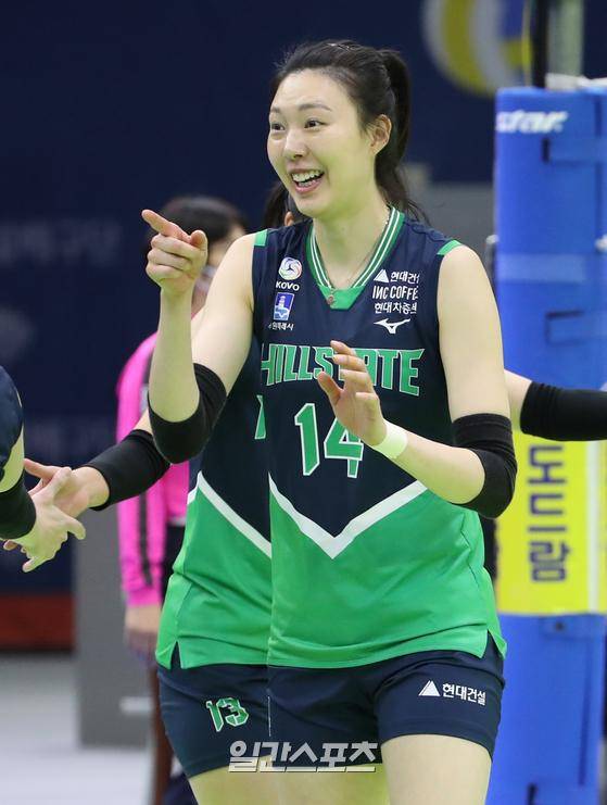 도드람 2022-2023 V리그 여자부 현대건설과 KGC인삼공사가 30일 오후 수원실내체육관에서 맞대결을 펼쳤다. 현대건설 양효진이 득점 후 환호하고있다.