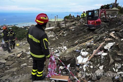epa10338693 Rescuers conduct a search operation for the last missing victims of a landslide on Ischia Island, Italy, 30 November 2022. Italy has declared state of emergency following a landslide on Ischia Island which until now has left eight people dead and four missing. An infant and two children are among the confirmed victims of the disaster. Four other people were injured and 230 stayed homeless after a massive avalanche of mud and debris hit the town of Casamicciola Terme following intense rain. EPA/CIRO FUSCO ITALY OUT