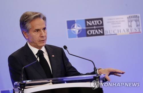 epa10338703 US Secretary of State Antony Blinken speaks during a press conference at the end of the NATO Foreign Ministers Meeting held at Parliament Palace in Bucharest, Romania, 30 November 2022. Foreign Ministers from NATO countries gathered in Romania's capital on 29 and 30 November 2022 to tackle Russia?s invasion in Ukraine, NATO?s support for Kyiv administration and regional partners and to find new ways to strengthen the Eastern flank of the alliance. EPA/ROBERT GHEMENT