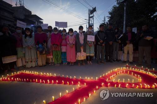 epa10338710 Women and children of 'Maiti Nepal', a rehabilitation and orphanage home for HIV-affected children, women, and victims of trafficking, light candles forming the 'Red Ribbon' symbol as they pray for those who have lost their lives due to HIV/Aids, on the eve of World AIDS Day in Kathmandu, Nepal, 30 November 2022. World AIDS Day is marked worldwide annually on 01 December to raise awareness for those living with the 'Human Immunodeficiency Virus', or HIV, that causes the 'Acquired Immunodeficiency Syndrome, known by its abbreviation AIDS. EPA/NARENDRA SHRESTHA