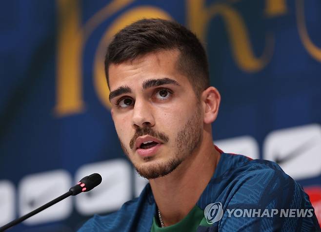 (도하=연합뉴스) 임헌정 기자 = 2022 카타르 월드컵 조별리그 3차전 상대인 포르투갈 축구 대표팀의 안드레 실바가 30일 오후(한국시간) 카타르 도하 외곽의 알샤하니야 훈련장에서 훈련에 앞서 인터뷰를 하고 있다. 2022.11.30