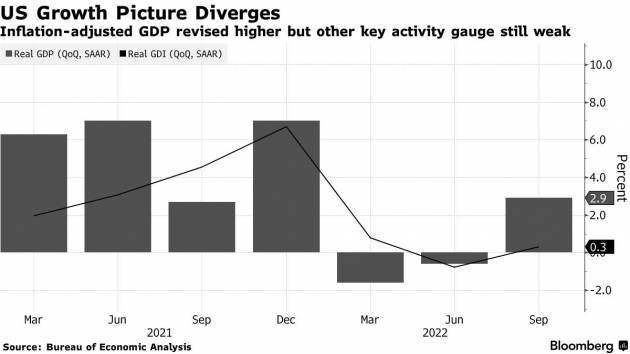 30일(현지시간) 블룸버그와 마켓워치에 따르면, 미 상무부는 3분기에 생산된 모든 재화와 서비스의 총 가치가 연율로 2.9% 증가했다고 발표했다. 이는 지난달 발표한 예비수치인 2.6%에 소비자 및 기업 지출 증가분이 반영돼 더 높아진 것이다.