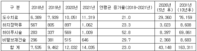 <표> 실손보험 주요 비급여 항목의 지급 보험금 추이 및 향후 전망