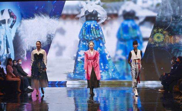 30일 오후 서울 강남구 테헤란로 섬유센터에서 열린 ‘2022 메타패션 쇼케이스 행사’에서 모델들이 런웨이를 하고 있다. 산업통상자원부(장관 이창양)가 주최한 이 행사는 패션 테크의 대표 분야이자 블루오션으로 급격히 성장하고 있는 메타패션 분야를 선점하기 위해 국내 유명 디자이너와 셀럽이 협업하여 메타패션 프로젝트 시범사업을 추진해 왔다.