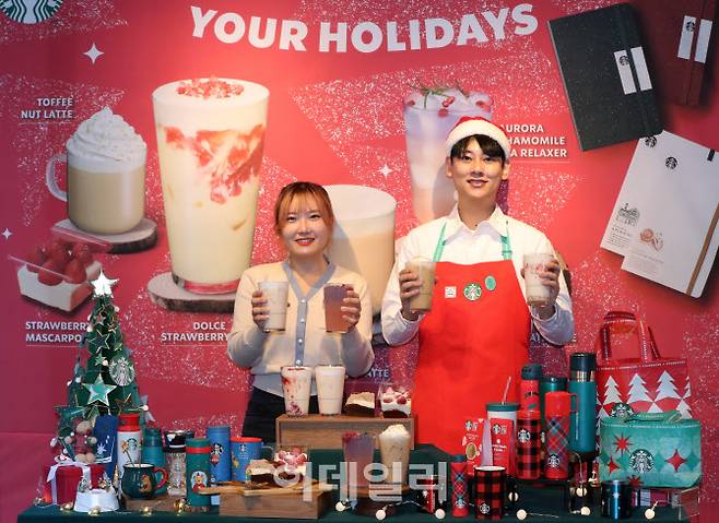 [이데일리 방인권 기자] 스타벅스 코리아가 1일 서울 중구 스타벅스 한국프레스센터점에서 연말 겨울 시즌을 알리는 신규 음료를 선보이고 있다.
